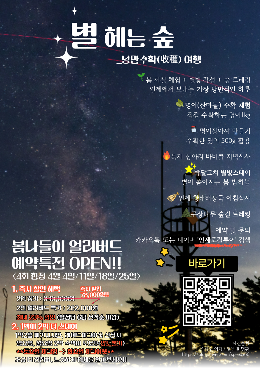 26년 인제군 체험지원상품 <별 헤는 숲, 낭만 수확 여행>