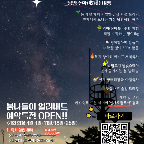 26년 인제군 체험지원상품 <별 헤는 숲, 낭만 수확 여행>